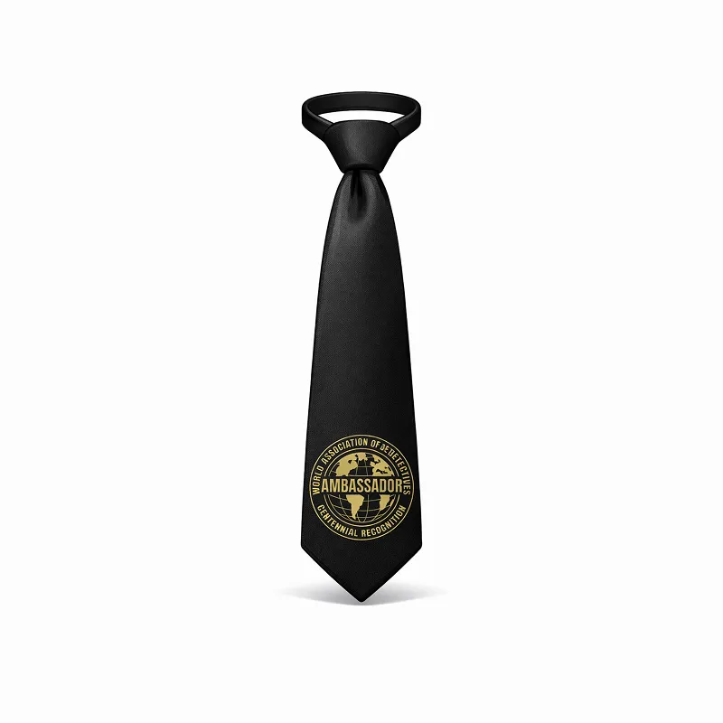 Exclusive black tie featuring the gold W.A.D. Ambassador emblem, created to recognize ambassadors of the association. The elegant and understated design reflects prestige, international cooperation, and the distinguished role of W.A.D. ambassadors at official events and conferences.