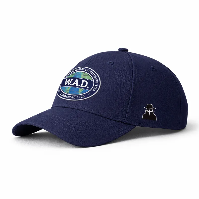 Classic navy-blue baseball cap featuring the official W.A.D. emblem on the front and a discreet investigator silhouette on the side. Designed for everyday wear, conferences, and association events, this cap combines a professional look with comfortable fit and durable construction.